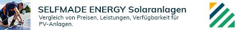 Sind Sie Besitzer eines E-Autos oder möchten Sie für Ihre Immobilie über einen Photovoltaikanlage die Batterie laden oder Energie für den Eigenbedarf oder in das öffentliche Stromnetz einspeisen, können Sie bei unserem Partner Selfmade-Energy über einen Photvoltaikvergleich verschiedene Anbieter vergleichen.